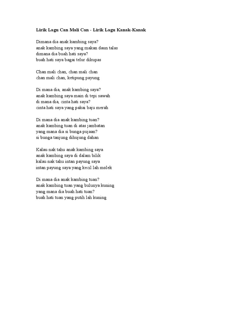 Aboi adalah ringkasan kepada aku budak sempoi kumpulan yang berkonsepkan punk rock. Chan mali chan, chan mali chan, chan mali chan, ketipung payung chan mali chan, chan mali chan, chan mali chan, ketipung payung. Chords for can mali can. Can mali can chord sequences automatically extracted by analyzing the can mali can.mid midi file. Proposé par :gdg miage gi cocody.