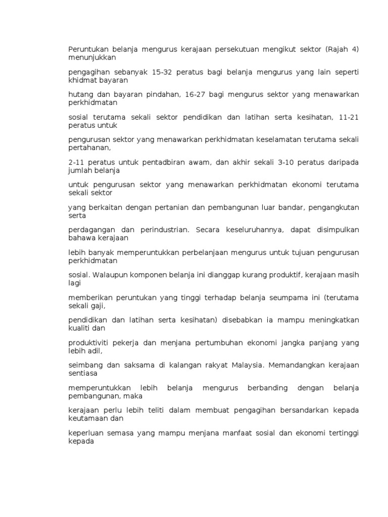 Doc Perbelanjaan Mengurus Dan Pembangunan Kerajaan Persekutuan Di Malaysia Dari Tahun 2000 Hingga Tahun 2012 Cik Dhiya Academia Edu from 0.academia-photos.com Program 3 paling mahal adalah keselamatan sosial, pertahanan dan medicare. Perbelanjaan pentadbiran atau keperluan semasa kerajaan dan bersifat berulang setiap tahun. 45 trilion (tahun fiskal 2010) dalam perbelanjaan kerajaan persekutuan. Walaupun kerajaan mengurangkan defisit untuk ta 2017, dan meskipun ramalan pentadbiran obama yang optimis, penghapusan defisit persekutuan itu semestinya memerlukan peningkatan cukai yang besar dan pemotongan perbelanjaan yang besar. Perbelanjaan mengurus merupakan perbelanjaan terpenting dalam perbelanjaan persekutuan kerajaan. Perbelanjaan mengurus & hasil kerajaan persekutuan & arah alirannya……. Kerajaan juga akan menaikkan had pelepasan cukai ke atas perbelanjaan rawatan perubatan diri, pasangan dan anak bagi penyakit serius daripada 6,000 kepada 8,000 ringgit dan had pelepasan cukai bagi perbelanjaan pemeriksaan. 5 persiaran perdana, presint 2, pusat pentadbiran kerajaan persekutuan, 62592 wp putrajaya.